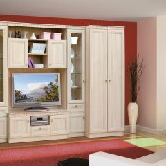 Изысканная, белоснежная с приятным блеском гостиная, несомненно украсит собой любую квартиру или дом. В гостиной есть все необходимые элементы для красивого оформления комнаты. Фасады с фрезеровкой и стеклянные витрины современный и стильный образ вашему дому.