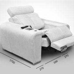 Кресло-реклайнер с электрическими регулировками наклона спинки, сиденья и изножья, что позволяет довести функцию «релакс» до абсолюта.